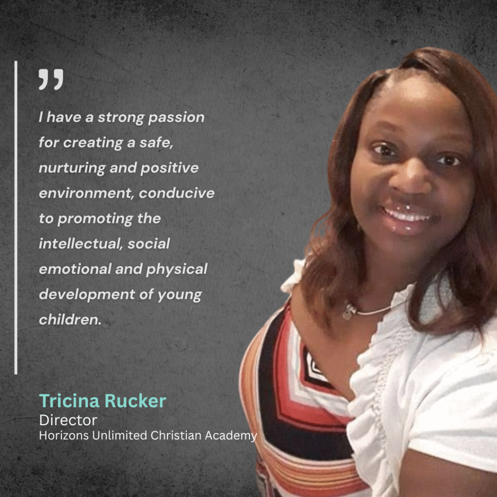 Under the direction of Tricina N. Rucker, Horizons Unlimited Christian Academy benefits from 27 years of dedicated experience in early childhood education. Ms. Rucker brings a strong passion for creating safe, nurturing, and positive environments that promote the intellectual, social, emotional, and physical development of young children. With her Early Childhood Associates degree from Pinellas Technical College and proven track record in leadership, parent engagement, staff training, and curriculum implementation, she is committed to ensuring that Horizons Unlimited Christian Academy serves as a welcoming space where all children, families, staff, and the surrounding community feel valued and supported. Her goal is to provide children with unbiased opportunities to explore learning possibilities through safe play and positive peer interactions, always maintaining an open mind and the flexibility to adapt to the unique needs of each child and family.